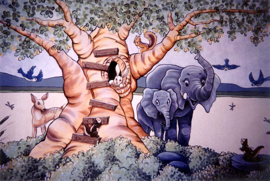 14' X 10' woodland animals in landscape with elephant